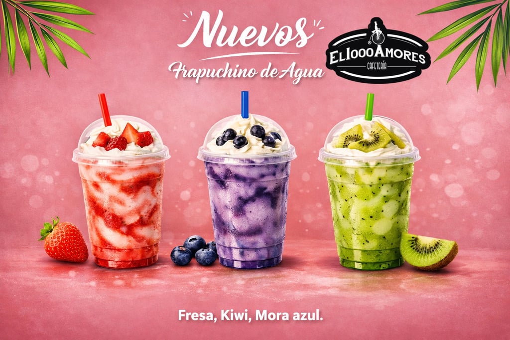 Frappe de Agua Fresa, Kiwi, Mora azul